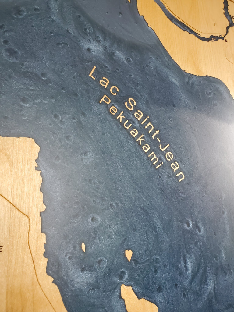 Décoration en bois et epoxy du Lac Memphrémagog